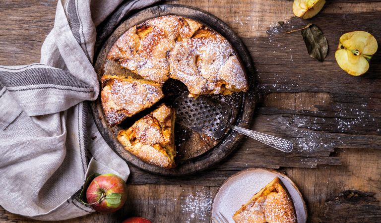 TITELFOTO: © lily_rocha – stock.adobe.com | BILDLEGENDE: Für Apfelkuchen gibt es unzählige Rezepte. Besonders lecker wird das Gebäck mit Vanillepudding aus Apfelsaft.