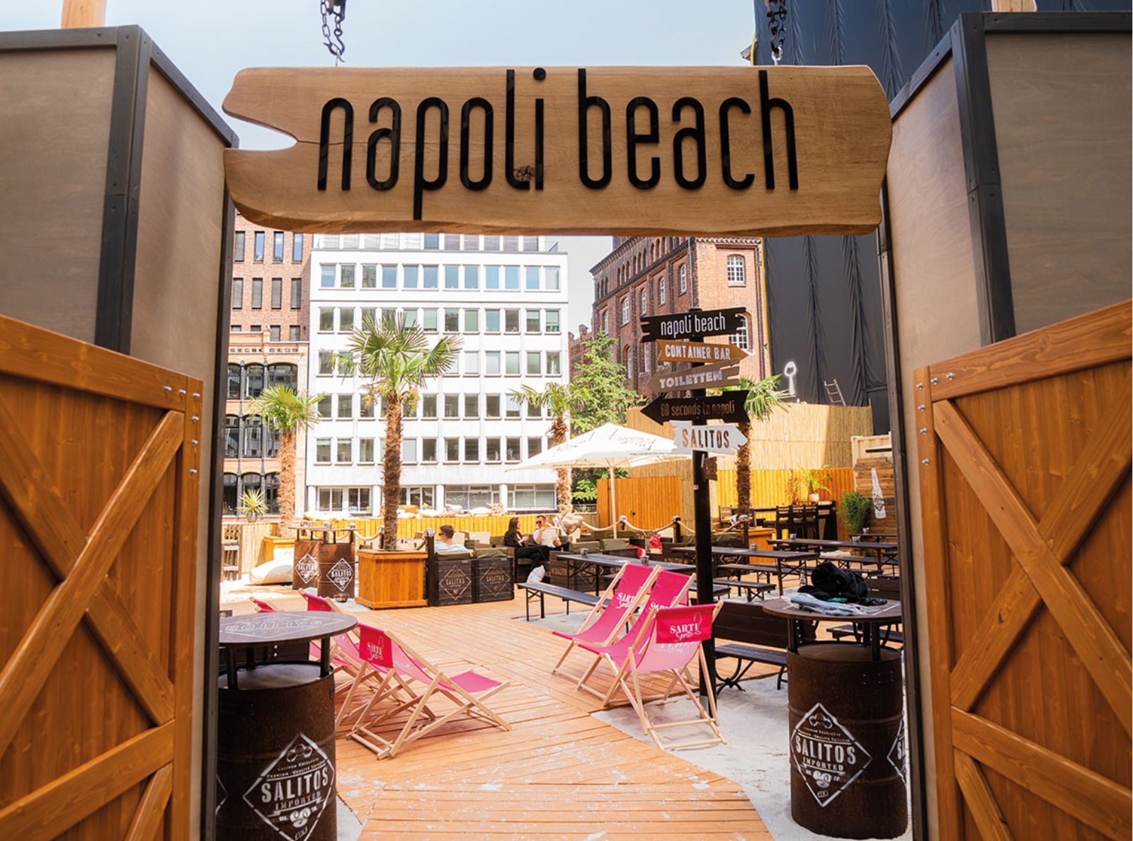 Die Hamburger Filiale im neuen Burstah-Viertel ist nicht nur hinsichtlich ihrer Größe eine besondere in der 60 seconds to napoli-Familie. Denn eigentlich gab es im vergangenen Jahr gleich mehrere Openings. Parallel zum Restaurant eröffnete direkt nebenan am Nikolaifleet mit dem Napoli Beach Club der erste Beachclub in der Innenstadt. Feinster Sand, tropische Palmen und Live-Musik verströmten sommerlich-karibisches Flair, 200 Personen fanden hier Platz zum Entspannen, Feiern und Genießen.