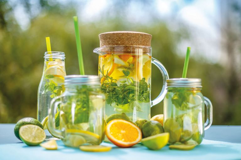 TITELFOTO: © grafvision, Envato Elements | BILDLEGENDE: Infused Water ist im Trend: Mit Kräutern und Früchten wird das Waser frisch aromatisiert. Eine gesündere Alternative zur Limo.