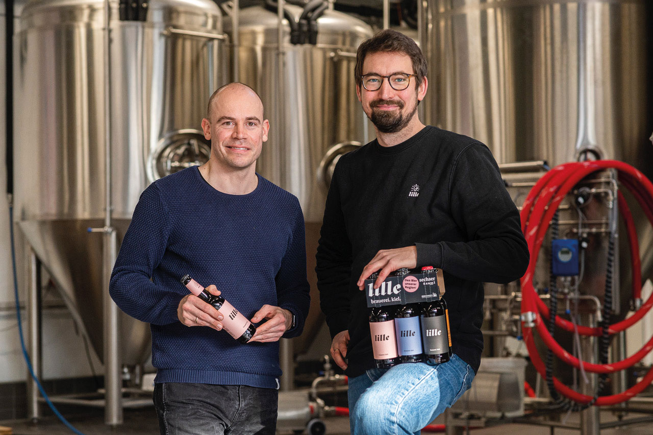 Wer an Kiel denkt, dem kommen die Ostsee, die Kieler Woche und vielleicht auch die Brauerei Lille Bräu in den Sinn. Seit drei Jahren brauen die beiden Gründer Max Kühl und Florian Scheske in zentraler Lage in der Förde-Stadt ihre Biere. Die teilweise ausgefallenen, aber immer qualitätsvollen Kreationen fallen mit den bunten, modern gestalteten Etiketten sofort auf. Doch Äußerlichkeiten sind bekanntermaßen Nebensache: Bierliebhaber sind vor allem von den Inhalten der dunklen 0,33-Liter-Flaschen schwer begeistert.