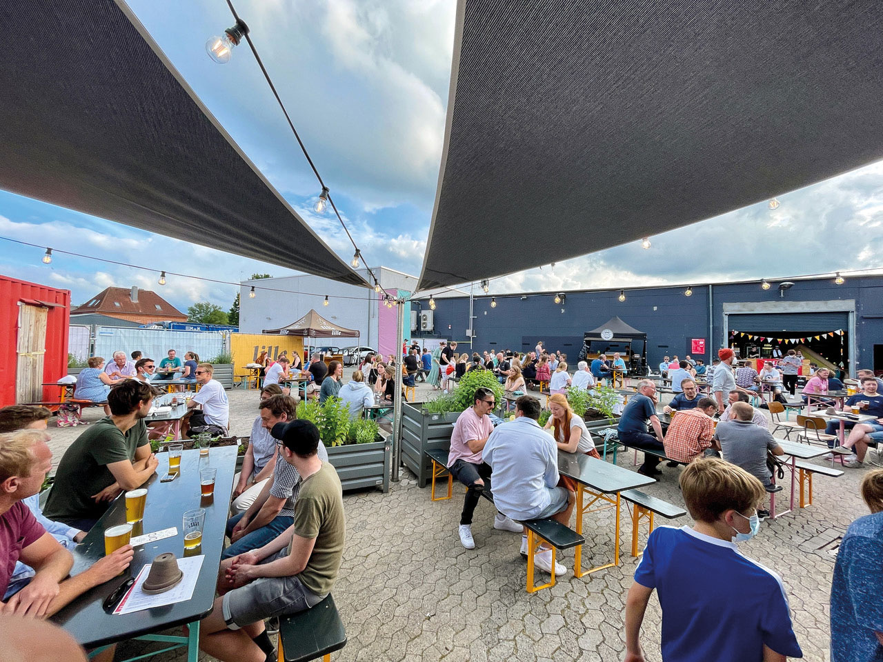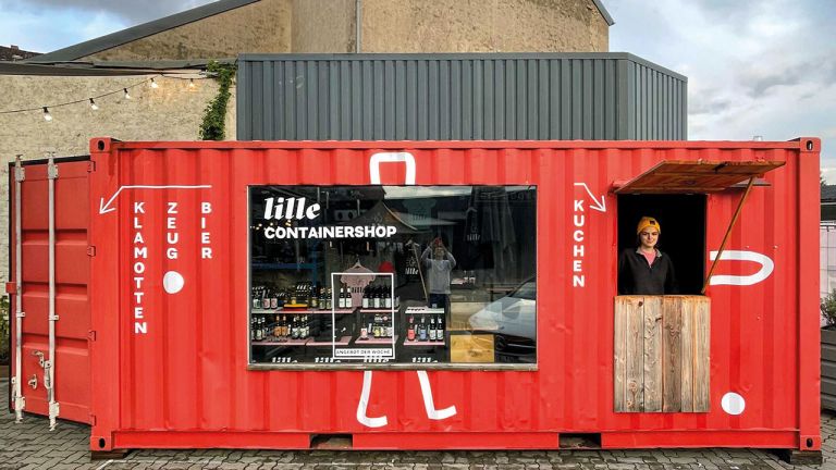 TITELFOTO: © Lille Bräu | BILDLEGENDE: Origineller Blickfang: Im Container auf dem Hof der Brauerei gibt es einen Merch-Verkauf und Glühweinstand.