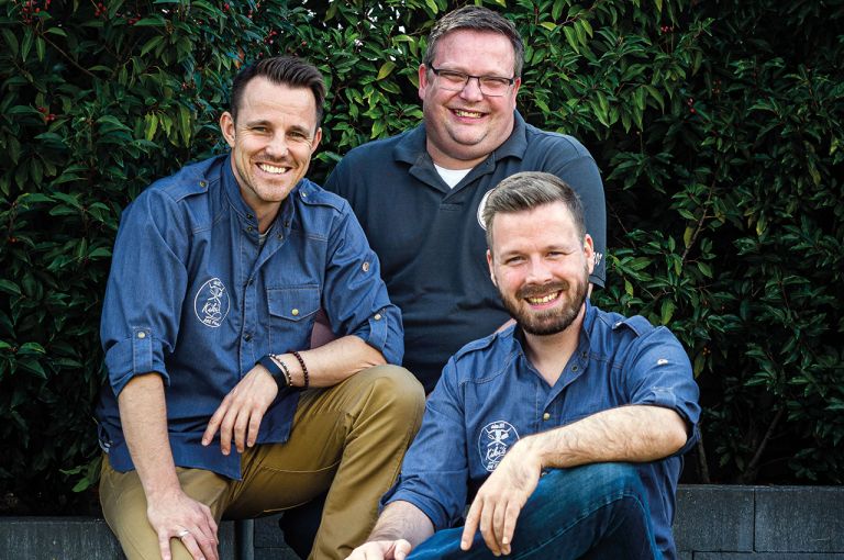 TITELFOTO: © Matthias Rammes | BILDLEGENDE: Dennis Bußmann, Christian Schaefer und Christian Schotte (von links) betreiben den erfolgreichen Grill-Blog "Kiki´s BBQ Place".