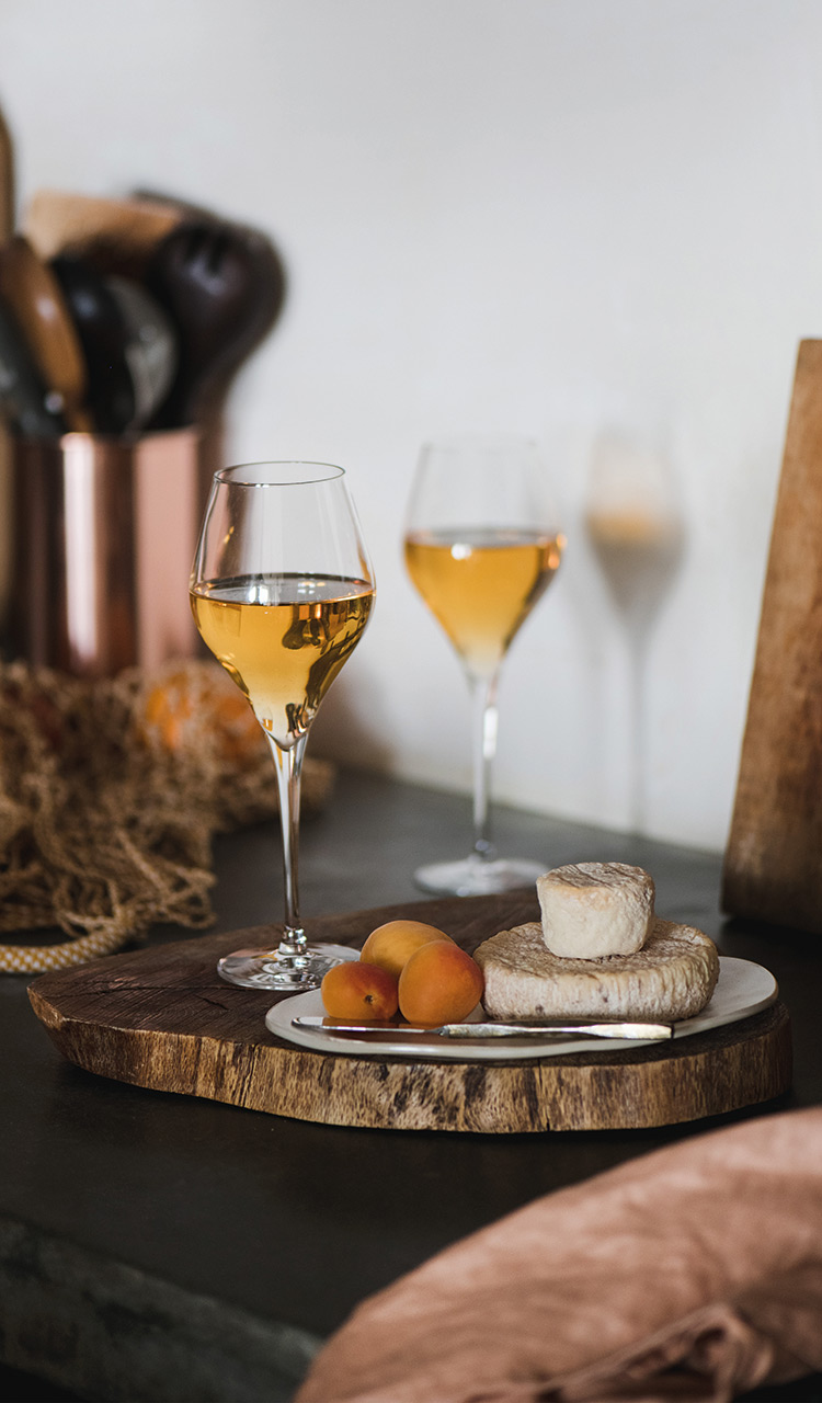Doch wie schmeckt denn nun ein Orange Wine? Die Aromen sind oft sehr komplex und körperreich. Mit einem leichten Weißwein haben sie eher weniger zu tun. Größter Unterschied ist die Gerbstofftextur, die im Orange Wine spürbar ist. Er kann im Glas auch durchaus naturtrüb erscheinen. Am besten entwickeln sich die Aromen bei einer Trinktemperatur ähnlich der von Rotwein. Dann sollte man dem Wein Zeit geben, um sein komplexes Aromenspiel im Glas zu entfalten. Die perfekten Begleiter zum Orange Wine sind zum Beispiel ein guter geräucherter Schinken und ein lange gereifter Käse.