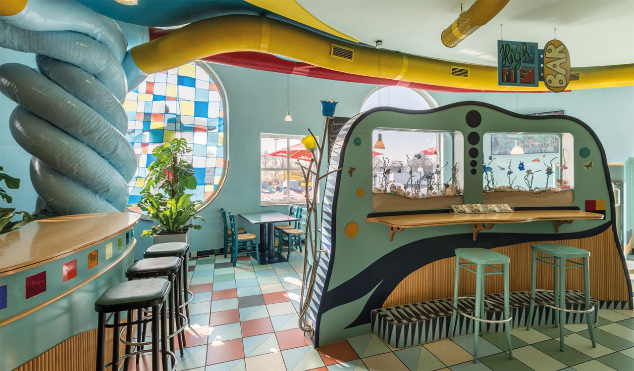 die Raststätte Illertal-Ost innen wie außen als Gesamtkunstwerk.
