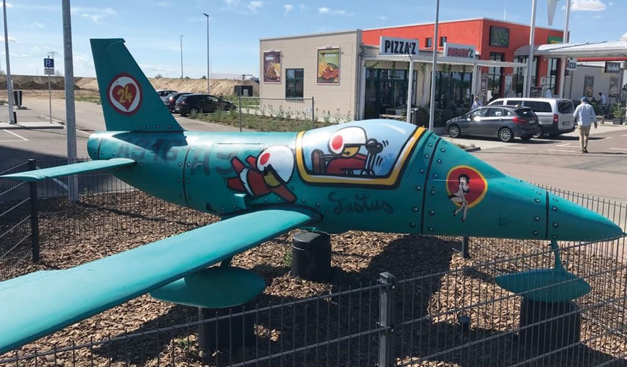 Zum Abschluss der Deutschlandreise wird es im Osten nochmals künstlerisch. Auch Autohöfe setzen auf individuelle Gestaltung. Am 2022 eröffneten Autohof Leipzig Flughafen heißt das Motto „Kunst und Kultur an der Autobahn“. Schon bei der Einfahrt fällt der Blick der Reisenden auf ein fünf Meter langes Flugzeug, für dessen farbenfrohe Gestaltung der französische Graffiti-Künstler Jace verantwortlich zeichnet. Jace Ticot ist weltweit für seine farbenfrohen „Gouzous“ bekannt, die den Autohof auch auf der Fassade und im Inneren zieren und den Hintergrund für eine „Selfie-Schaukel“ bilden. Eine integrierte Ausstellungsfläche bietet Platz für noch mehr Kunst, den Start machte eine Ausstellung zum Kunstflugweltmeister Matthias Dolderer, der zum Grand Opening eine spektakuläre Flugshow zeigte.