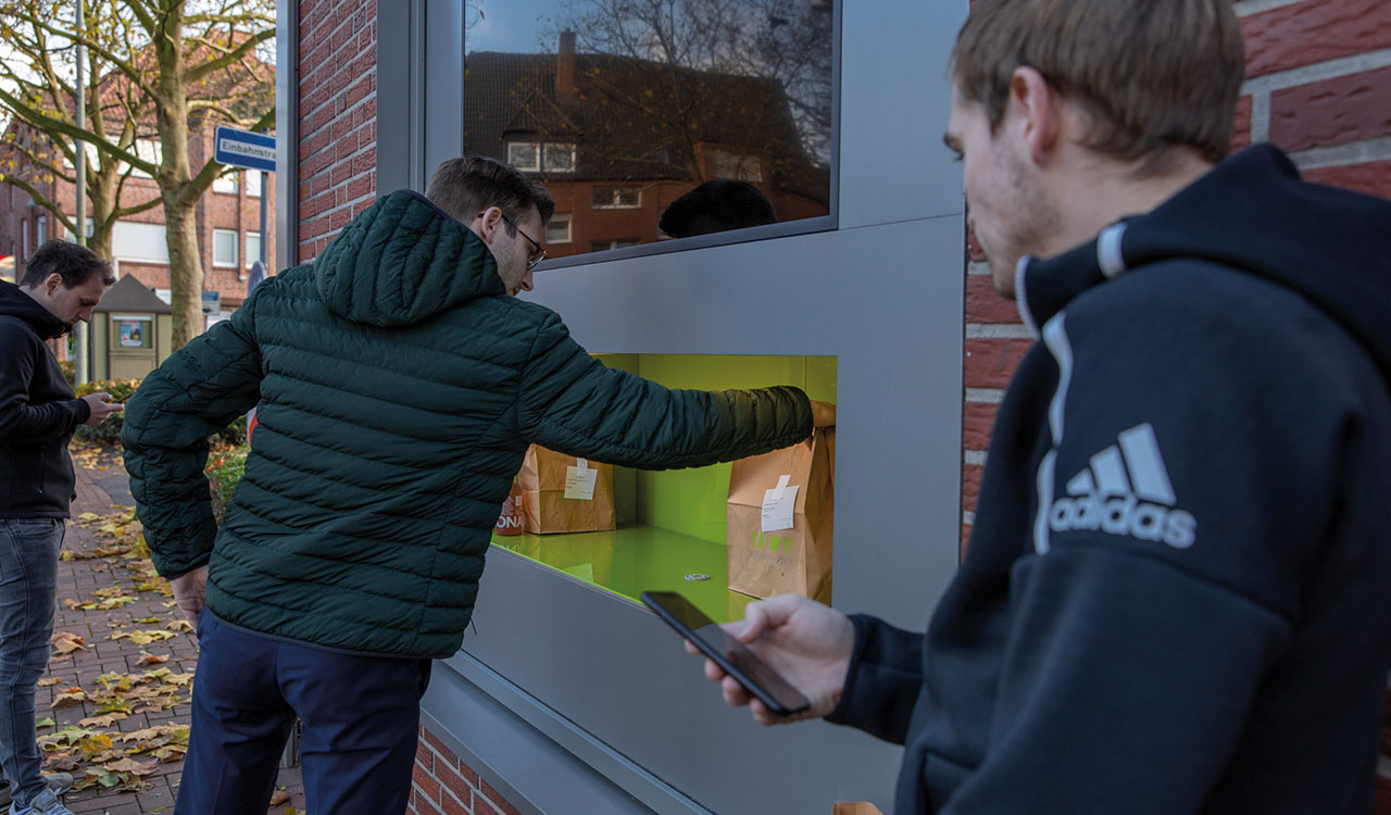 Auch im 24/7-Supermarkt und im „aufHaus“, dem ersten begehbaren Online-Shop, ist das Smartphone Türöffner, Einkaufsberater und Zahlungsmittel in einem. Das aufHaus in der Ahauser Innenstadt ist eine Kombination aus Ausstellung, Kaufhaus, Marktplatz und Treffpunkt, geöffnet an 365 Tagen im Jahr. Und es ist ein Sammelplatz: Die angebotenen Waren stammen von verschiedenen Anbietern, großen wie kleinen, aus der Stadt und der Region. Informationen zu den Produkten lassen sich ebenso wie die Preise per QR-Code abrufen, auch ein direkter Kauf ist möglich. Abseits der klassischen Öffnungszeiten soll das aufHaus zur Belebung der Innenstadt beitragen, indem es mit seinem besonderen Einkaufserlebnis die Vorteile von stationärem und Online-Handel vereint.