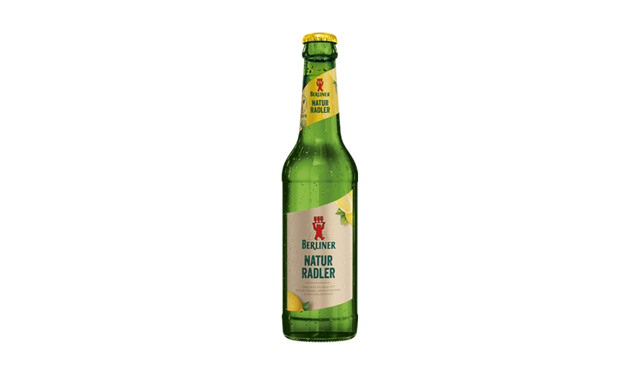 Frisch und spritzig, fertig gemischt. Das Natur Radler ergänzt die Berliner Palette mit einem perfekten Mix aus Berliner Pilsner und naturtrüber Zitronenlimonade bei 2,5 Volumenprozent Alkoholgehalt. Statt künstlicher Zusatzstoffe ist jede Menge Geschmack in der Flasche. Das schmeckt am besten gut gekühlt – und ist nur echt mit dem roten Berliner Bären.