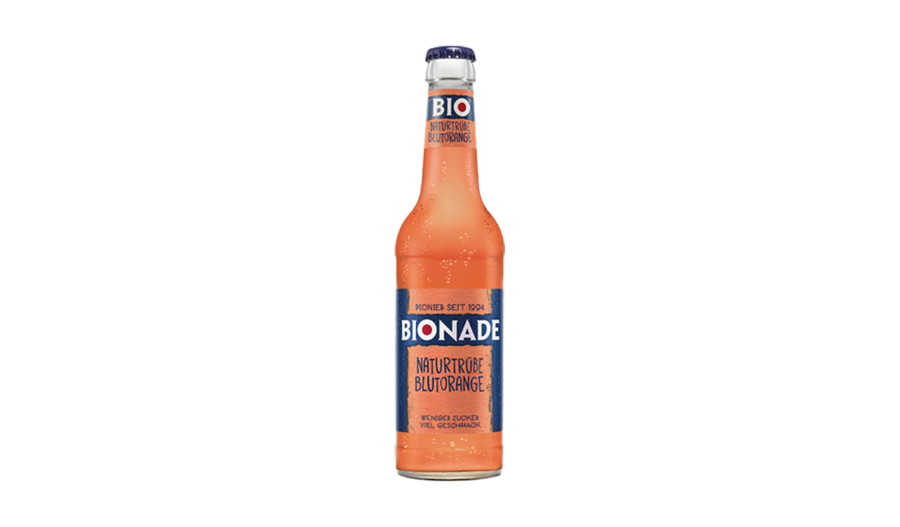 BIONADE Naturtrübe Orange trifft den Nerv der Zeit: Prickelnd, herb und weniger süß enthält sie wie alle BIONADE-Sorten zu 100 % Bio-Rohstoffe und keine künstlichen Zusätze. Für den leuchtend roten Farbton und die leicht herbe Note sorgen Bio-Blutorangen aus Italien. Das besondere Klima – warme Tage und kühle Nächte – sorgt für die Bildung von Anthocyanen, die den Orangen ihre blutrote Farbe verleihen. Die neue Sorte ist erhältlich in der 0,33-l-Mehrweg-Glasflasche.Â