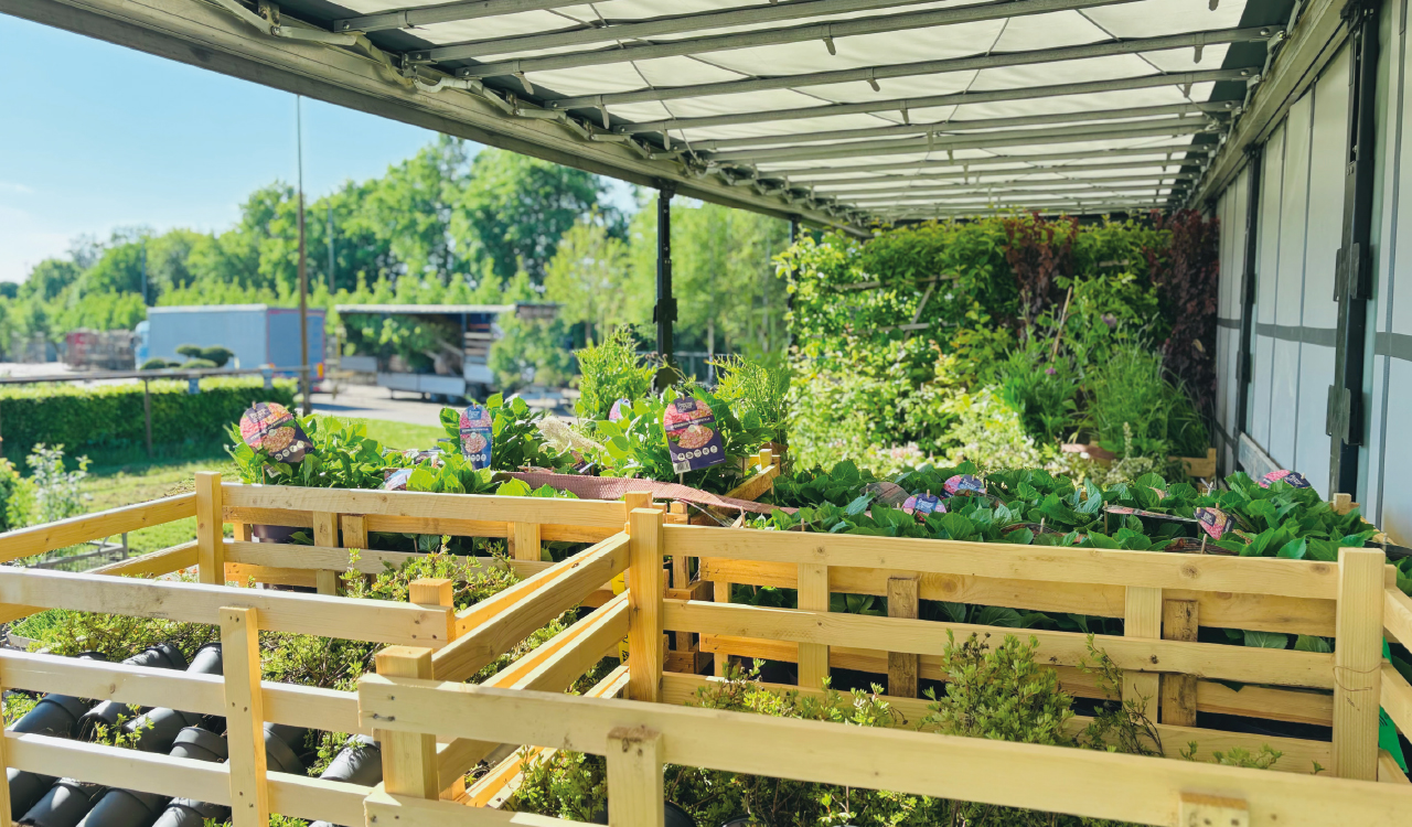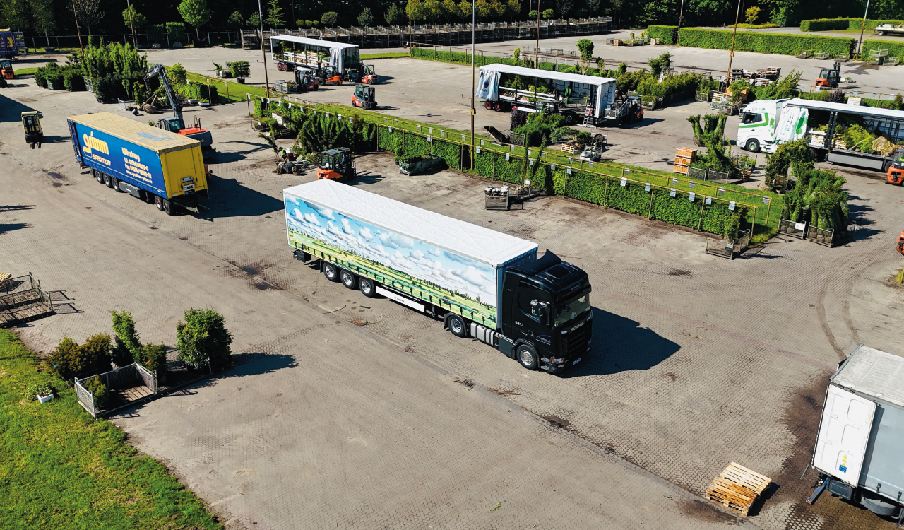 Den beladenen Auflieger übernimmt ein Borchers-Fahrer zur Abfahrtskontrolle – und geht dann auf Tour. Das sei aber nur ein Teilbereich der Dienstleistung, betont Christoph Mengel: „In der Pflanzenlogistik gibt es viel zu beachten. Bleiben die Pflanzen etwa bei Mehrtagestouren längere Zeit auf dem Anhänger, muss für eine ausreichende Belüftung gesorgt sein. Bei teils sechs oder sieben unterschiedlichen Zielorten müssen sich unsere Fahrer außerdem zuverlässig avisieren und mit den Kunden vor Ort souverän kommunizieren.“