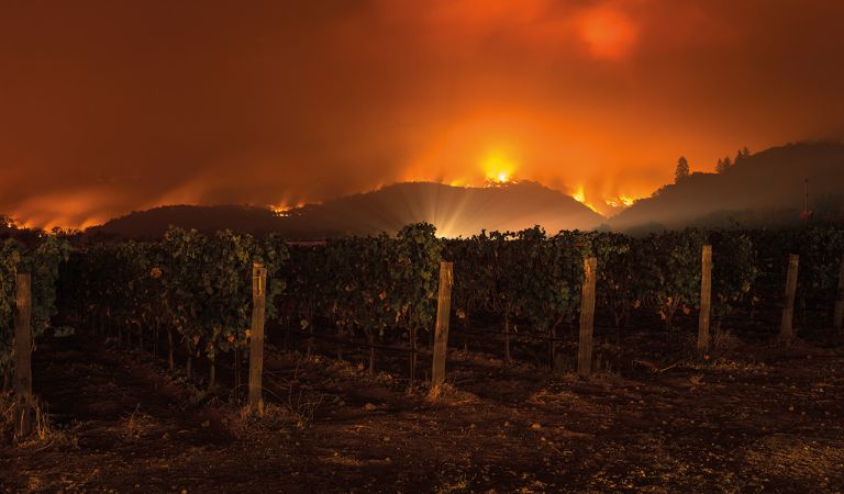 Ganz anders sieht die Situation in Kalifornien aus: Seit Jahren werden der US-Bundestaat und seine Weinanbaugebiete immer wieder von verheerenden Waldbränden heimgesucht. Wenn es nicht das Feuer ist, das die Ernte zerstört, dann ist es der Rauch: „Smoke taint“ nennen die Winzer das ungewollte Raucharoma in Trauben, dass diese praktisch wertlos macht. 2020 ließen kalifornische Winzer ganze acht Prozent der Trauben einfach verrotten, da sich die Lese der verräucherten Früchte nicht lohnte. In Südaustralien ist das Ausmaß der Buschfeuer in der Regel nicht ganz so groß, dafür erleiden jedes Jahr bis zu 15 Prozent der Trauben Sonnenbrand aufgrund der großen Hitze und der starken Sonneneinstrahlung.