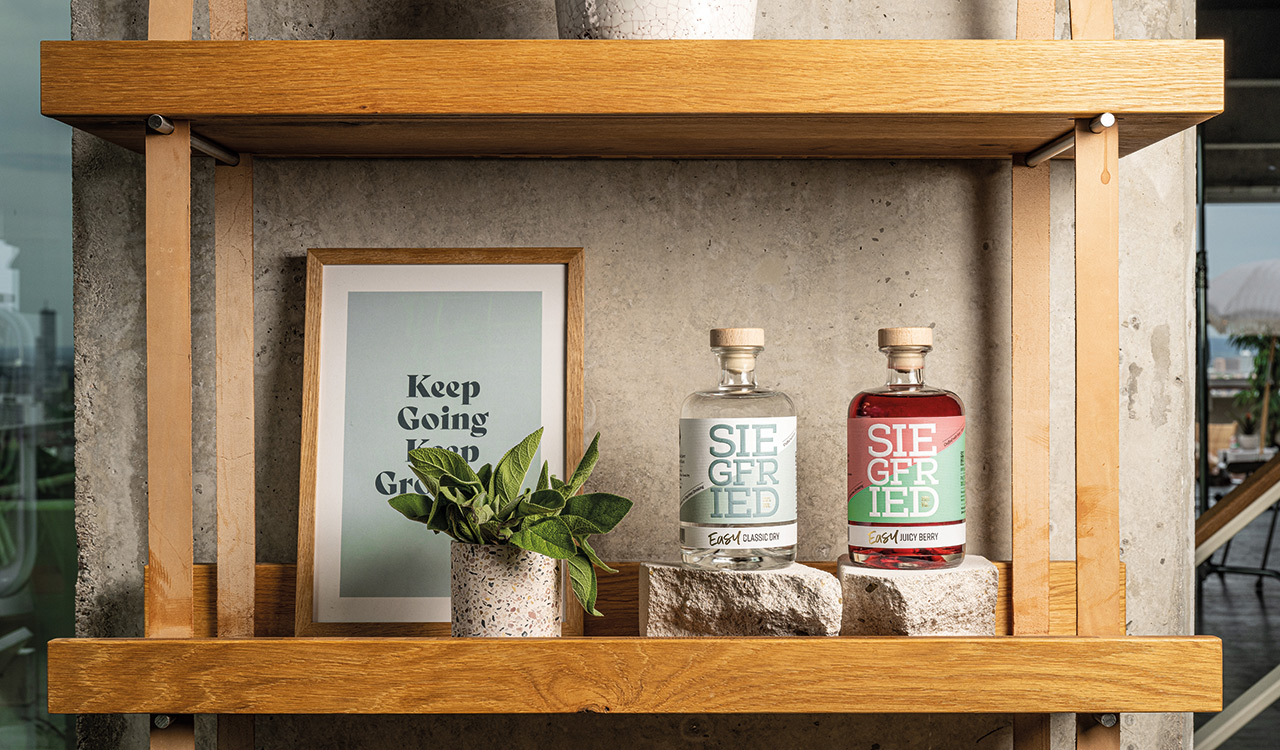Aber die Entscheidung zwischen Alkohol und kein Alkohol muss nicht sein. Auch der Mittelweg – wenig Alkohol – ist mittlerweile möglich. Alkoholreduzierte Getränke sind ebenso gefragt wie ihre alkoholfreien Verwandten. In Deutschland sind die Rheinland Distillers mit ihrem neuen Produkt wieder voll im Trend. Nach den erfolgreichen alkoholfreien Alternativen Siegfried Wonderleaf und Wonderoak ist die Bonner Destillerie jetzt mit dem Siegfried Easy an den Start gegangen. Den „Gin“ gibt es in den Sorten Classic Dry und Juicy Berry. Beim Alkoholgehalt kommt der Siegfried Easy auf leichte 20 Prozent. Gin steht nicht auf der Flasche, da sich ein Getränk nur bei einem Alkoholgehalt von 37,5 Prozent so nennen darf. Im Siegfried Easy Classic Dry kommen aber die gleichen Botanicals zum Einsatz wie im Dry Gin des Herstellers. Wird der Siegfried Easy in einem Longdrink eingesetzt, hat der Drink den gleichen Alkoholgehalt wie ein Bier. Dafür braucht es ein Mischverhältnis von einem Teil Siegfried Easy und drei Teilen Tonic oder einem anderen Filler.