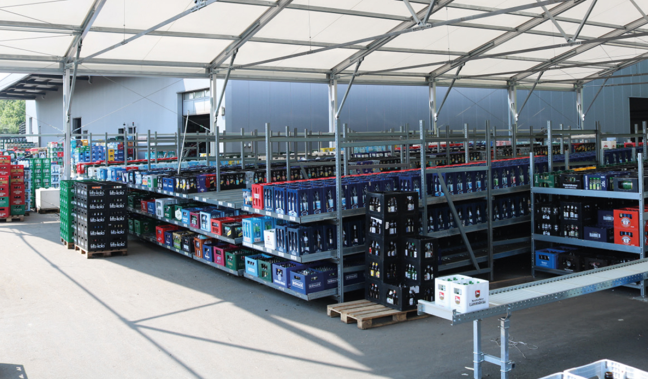 Der Umbau der Anlage konnte über einen Zeitraum von gut zwei Monaten fristgerecht umgesetzt werden – und das ohne größere Beeinträchtigung im gesamten Prozessablauf für die Kunden und Lieferanten. Im Zuge der Umbaumaßnahmen modernisierte der Standort zudem die Beleuchtung innerhalb der Leergutsortierhalle und errichtete ein 1.200 Quadratmeter großes Zelt neben der Halle, in dem das alte und das neue Kastenstauregal witterungsgeschützt wiederaufgebaut wurde und so zukünftig als zusätzliche Erweiterung genutzt werden kann.